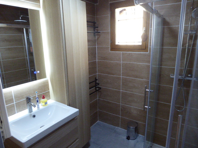 Grand garage pour ranger vélo et ski. Place de parking devant le garage.